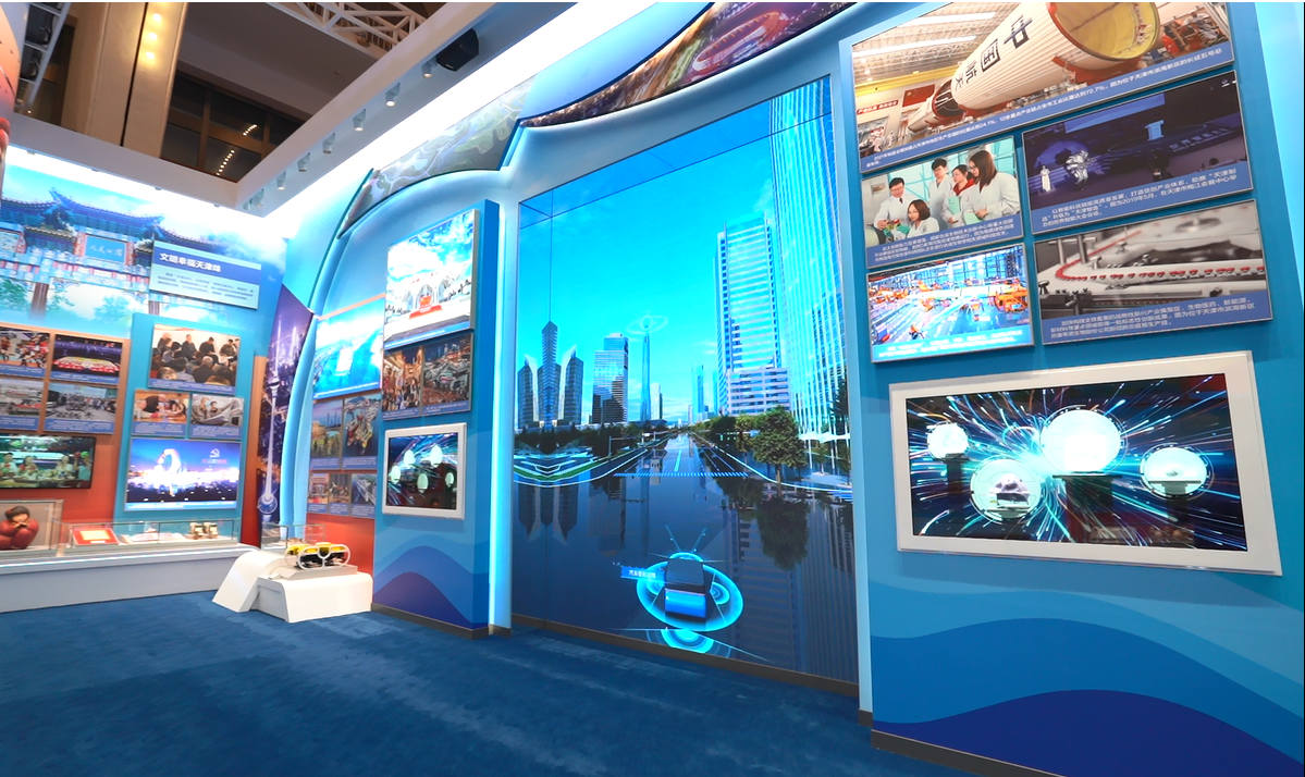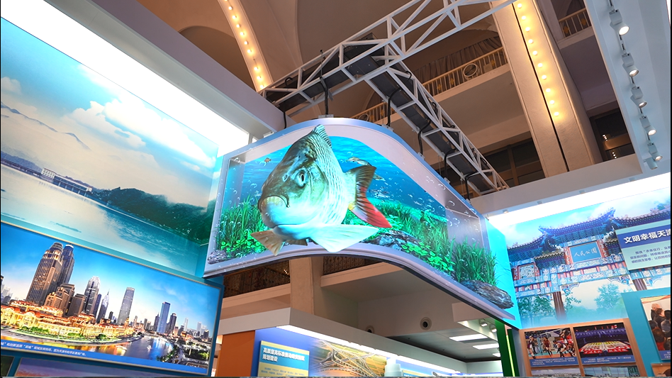 在 " 生态优先天津蔚 " 单元,通过利亚德裸眼 3D 技术,观众可以感受绿色画卷正在津沽大地铺展开来。
