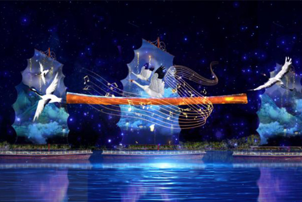 虚拟与现实相结合的漯河元宇宙灯光世界,将光影艺术与多重科技融为一体,让观众与数字人漯漯携手穿越九千年历史,从新石器时代的贾湖遗址一路走向未来